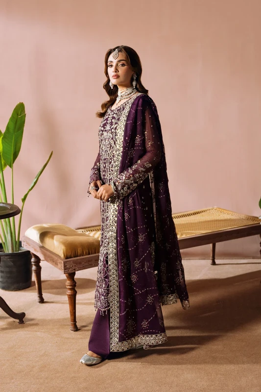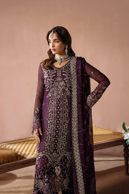 Embroidered Chiffon Back with Sequence